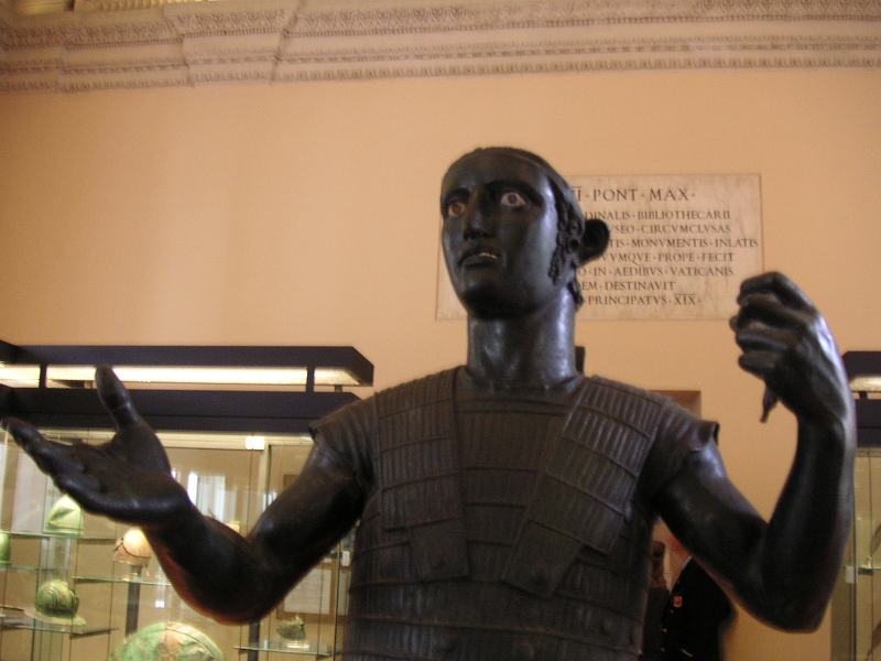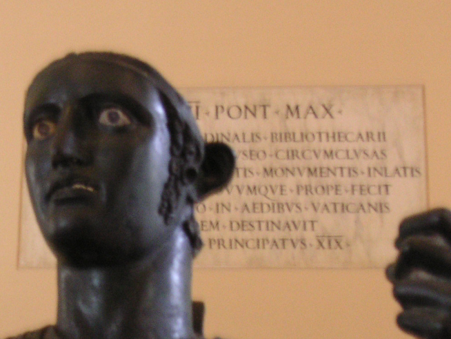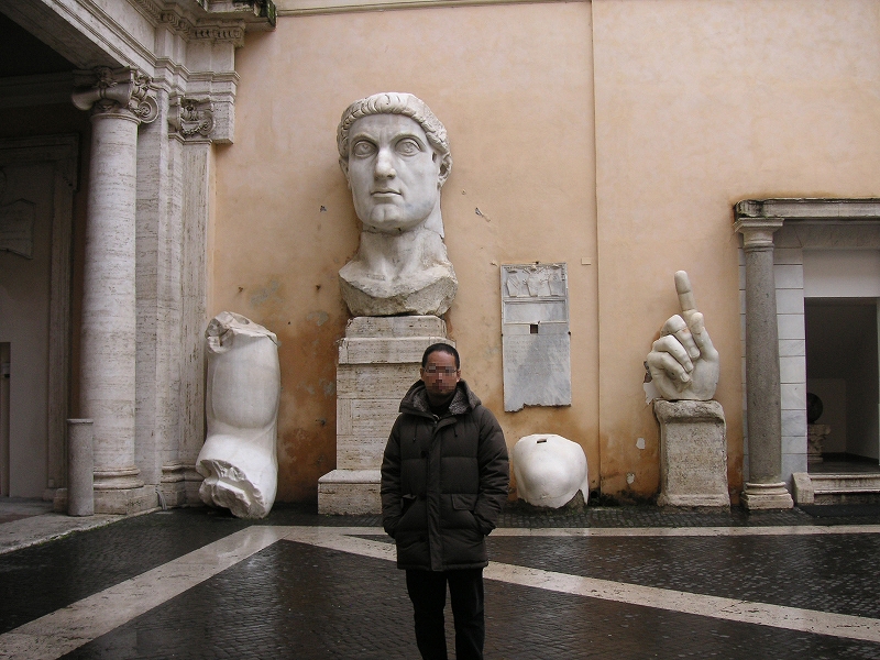 マルチェロ劇場跡(今は改造されてアパートになっている)のあたりを歩いて、「ヴィットリオ・エマヌエーレ2世記念堂」(ここには入らなかった。中正紀念堂みたいなものか?)の隣にある「カピトリーニ博物館」に行った。ここには、巨大コンスタンティヌス像がある。ここもかなり充実した博物館だった。ロムルスとレムスの像とか。ヘルメ柱(道祖神…だなどう見ても)の素晴らしいものもあった。あまりにも展示品が多いんで、途中から疲れてあまり見てない。(彫刻はとにかく古代の白い石の人物像、絵はとにかくマリア、ヨハネ(サンジョバンニ)、パウロ(サンパオロ)とペテロ(サンピエトロ)。それにしても同じような作品ばかりで、いずれ劣らぬ名品ばかりなんだろうが、さすがに飽きてしまった。先にバチカンにいったのは正解だったようだ。)ここでも「PONT MAX」という表示をたくさん見たが、他に「SPQR」という表示もたくさんあって、これまた意味が分からなくて不思議だった。(後で調べたら、ラテン語で「市民諸君」みたいな意味の言葉の略らしい。)企画展で「ミケランジェロの下描き特集」みたいなのをやっていた。最上階のこぎれいなバールで生搾りオレンジ「スプレムータ・アランチャ」を飲んだ。こういう施設の中のセルフサービスのバールは座ってもボラれないから安心だ。
