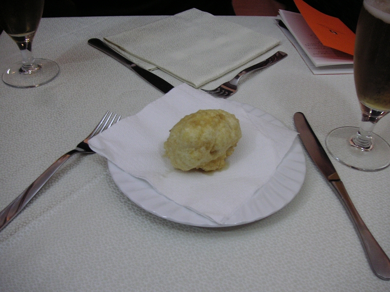 1時間ほどして飲み物とつまみ(ビスケット)が配られた。白ワイン vino bianco もらった。ヴィーノビアンコと言ったら通じた。