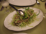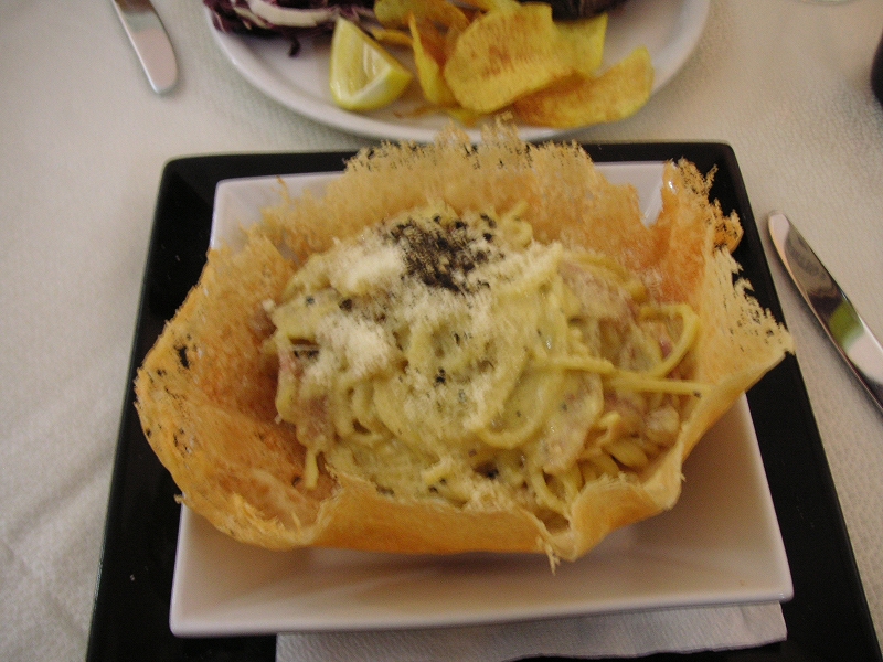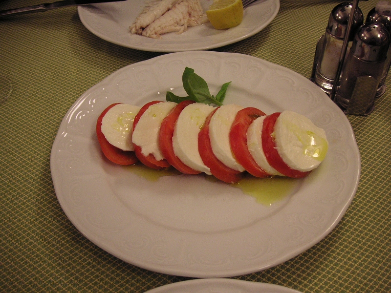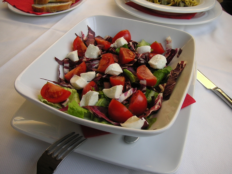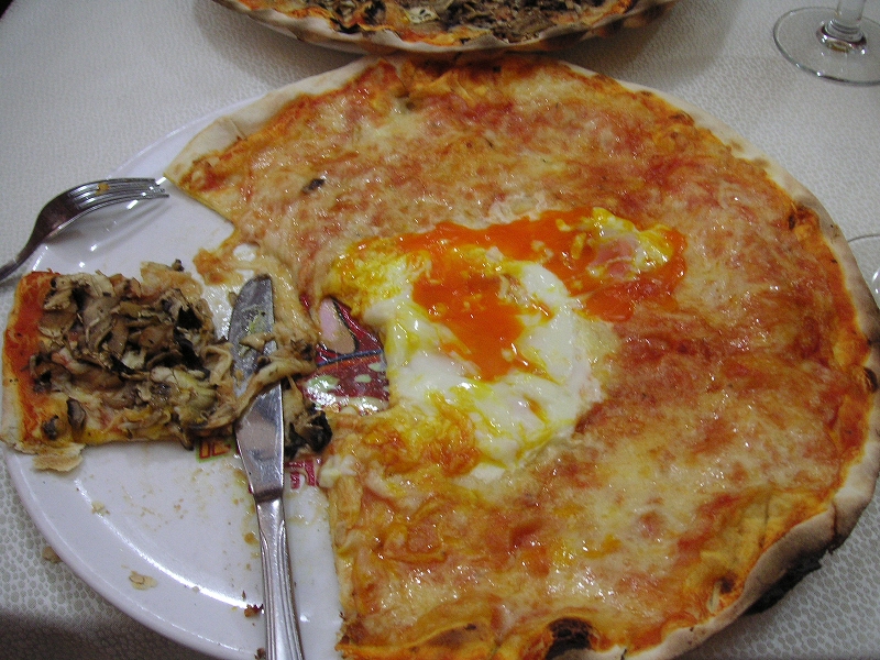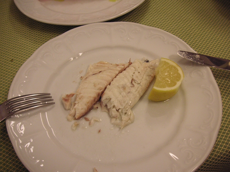 夕食は昼と同じ店へ。モッツァレラチーズとトマトのカプレーゼをまた食べる。さらに魚料理に挑戦したのだが、注文の仕方が難しい。メニューにあるのは100グラムあたりの値段で、一匹注文すると20ユーロもした。それもごく普通の白身魚(スズキ?自信ない)の塩焼きで、皮や頭は取り除かれてしまった。置いといてくれたら食べるのに、MOTTAINAI。一緒に頼んだサーモンのクリームスパゲティは極上のうまさだった。デザートのティラミスも良かった。