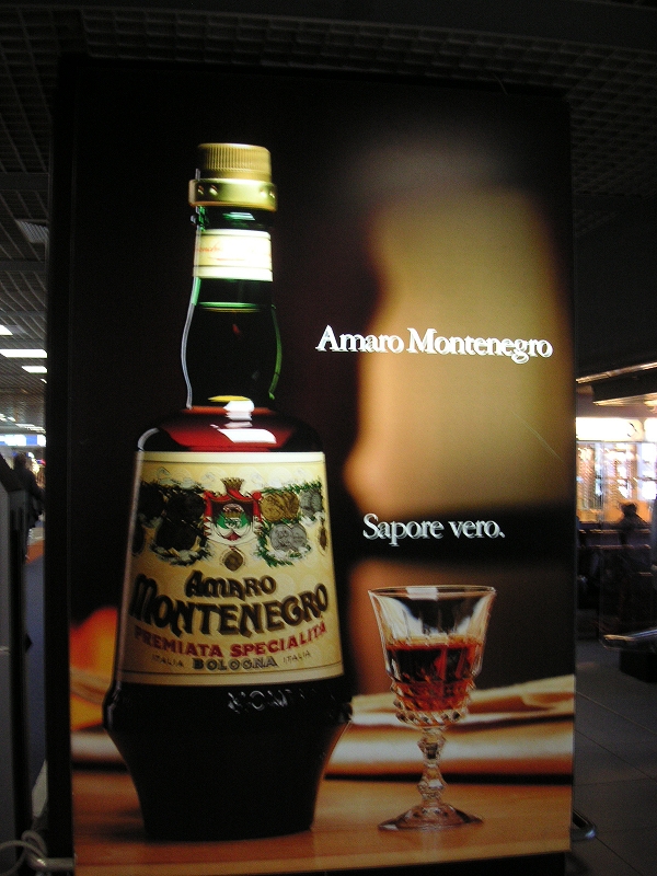 「アマロ・モンテネグロ」の広告があったので撮影。今考えたら免税店で買っとけばよかった。たしか一本15ユーロぐらいだったから安くはないが、日本で買うと倍以上である。